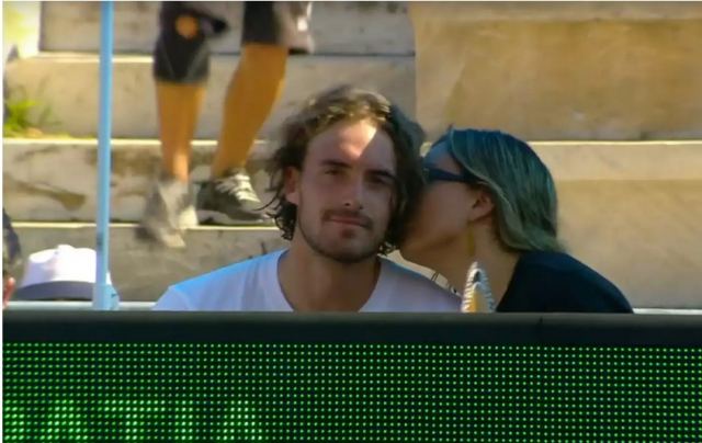 Η κάμερα “έπιασε” την Ισπανίδα τενίστρια μάλιστα, να δίνει ένα φιλί στον κορυφαίο Έλληνα αθλητή και μαζί να παρακολουθούν τις προσπάθειες του Σκορίλα απέναντι στον Σλοβάκο Μόλκαν, στο Παναθηναϊκό Στάδιο.
