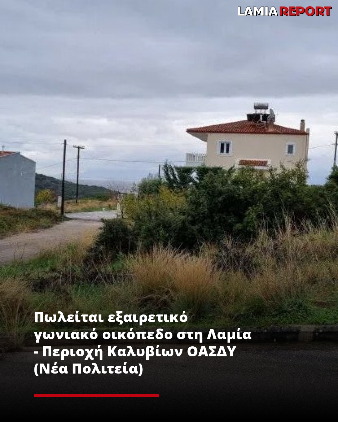 Πωλείται γωνιακό οικόπεδο συνολικής επιφάνειας 440 τ.μ., σε προνομιακή και ήσυχη περιοχή της Λαμίας, στα Καλύβια ΟΑΣΔΥ (Νέα Πολιτεία).
