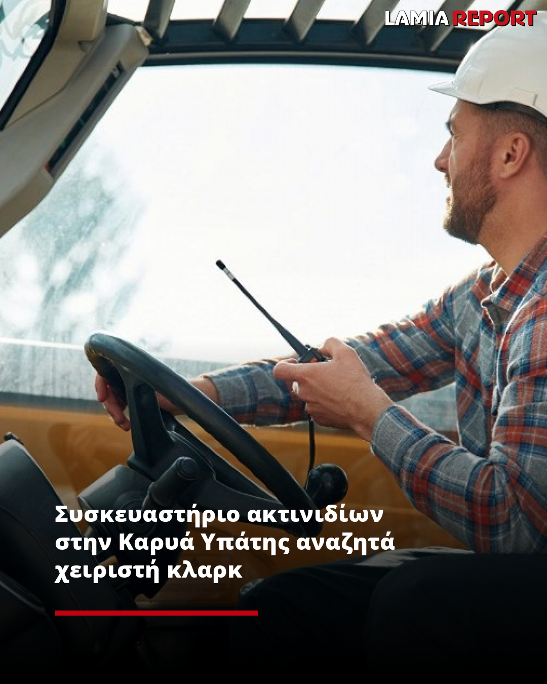 Ζητείται χειριστής κλαρκ, με δίπλωμα του Υπουργείου Βιομηχανίας, για εργασία σε συσκευαστήριο ακτινιδίων στην Καρυά Υπάτης.