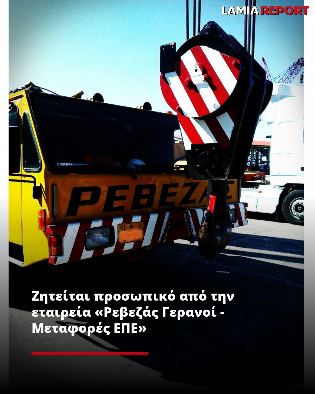 Ζητείται προσωπικό από την εταιρεία «Ρεβεζάς Γερανοί - Μεταφορές ΕΠΕ»