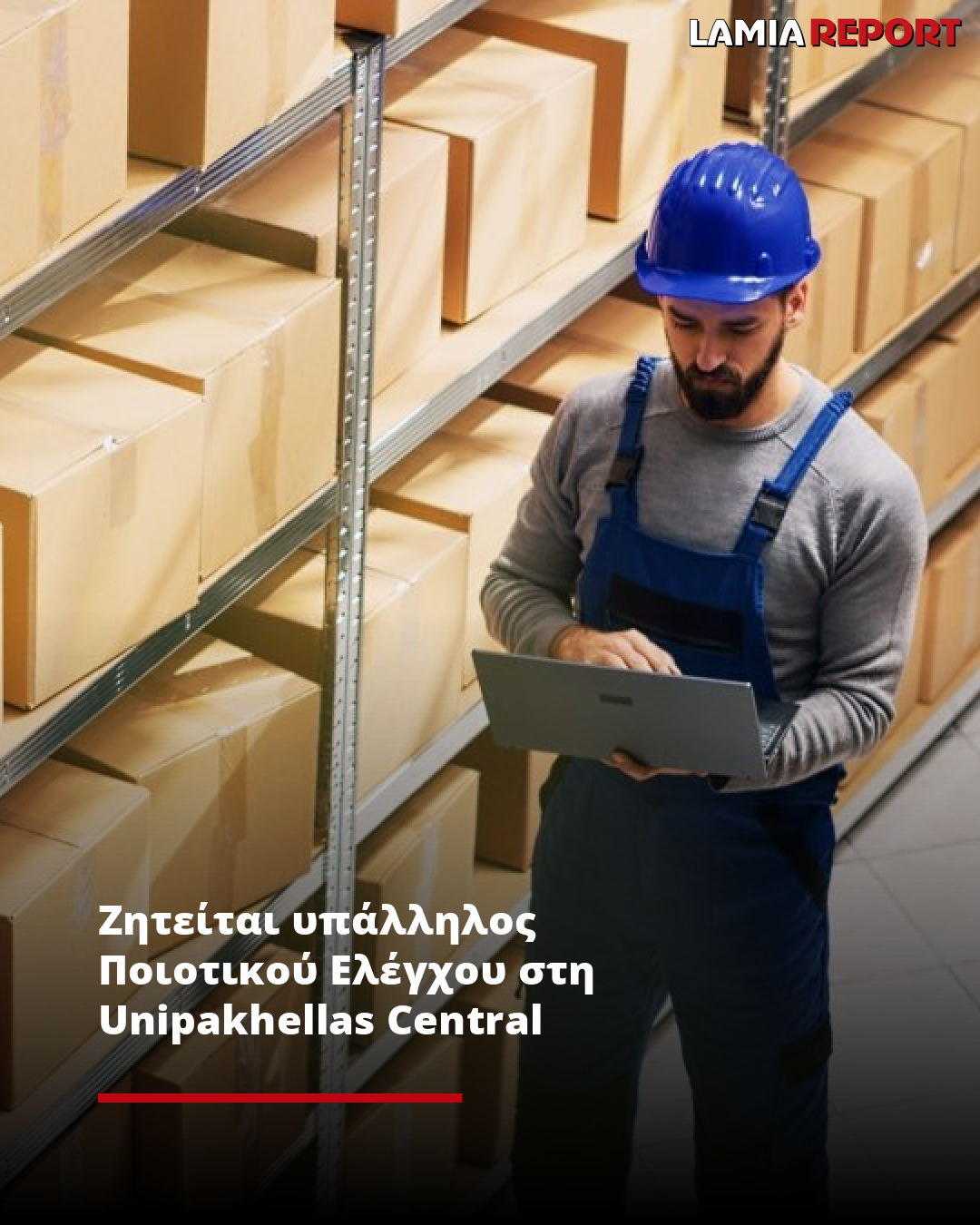 Η Unipakhellas Central (μέλος του ομίλου Indevco) αναζητά Υπάλληλο για το τμήμα Ποιοτικού Ελέγχου στις εγκαταστάσεις της στην Πελασγία.