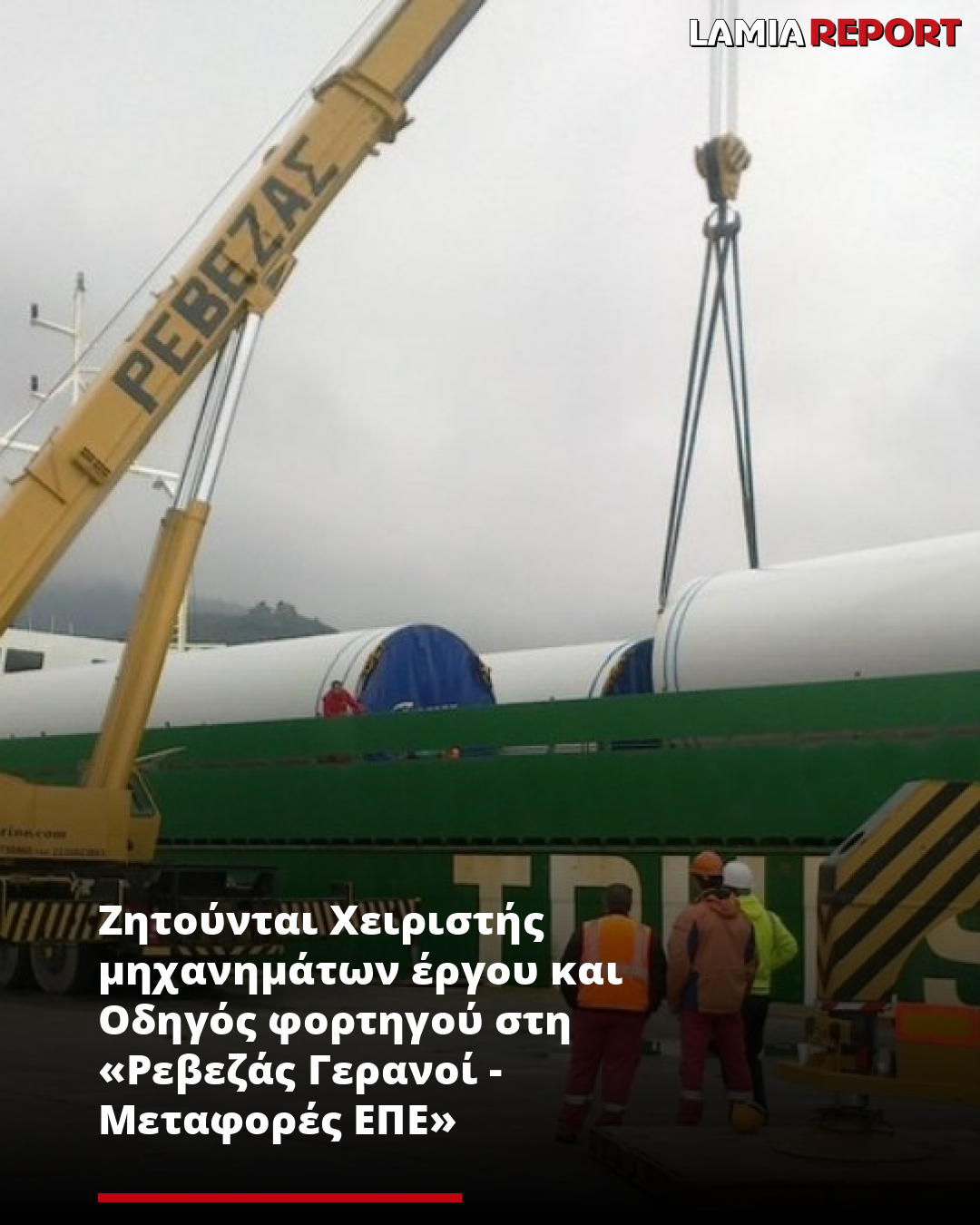 Η «ΡΕΒΕΖΑΣ ΓΕΡΑΝΟΙ-ΜΕΤΑΦΟΡΕΣ ΕΠΕ» αναζητά άμεσα προσωπικό για δύο θέσεις εργασίας, με έδρα τη Λαμία.