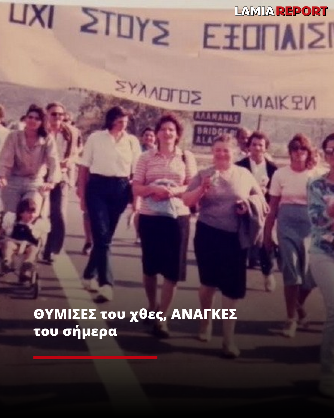 Η αφορμή για όλες αυτές τις θύμησες της νιότης μου είναι μια ξεχασμένη φωτογραφία (που ανακάλυψα γυρνώντας τις σελίδες ενός παλιού άλμπουμ) από την πορεία ειρήνης ΑΛΑΜΑΝΑ-ΛΑΜΙΑ του 1986 όπου κάτω από το πανό του Εξωραϊστικού και Εκπολιτιστικού Συλλόγου Γυναικών Λαμίας φαίνεται ανάμεσα στα μέλη του συλλόγου που διαδήλωναν η μητέρα μου Θεοδώρα.