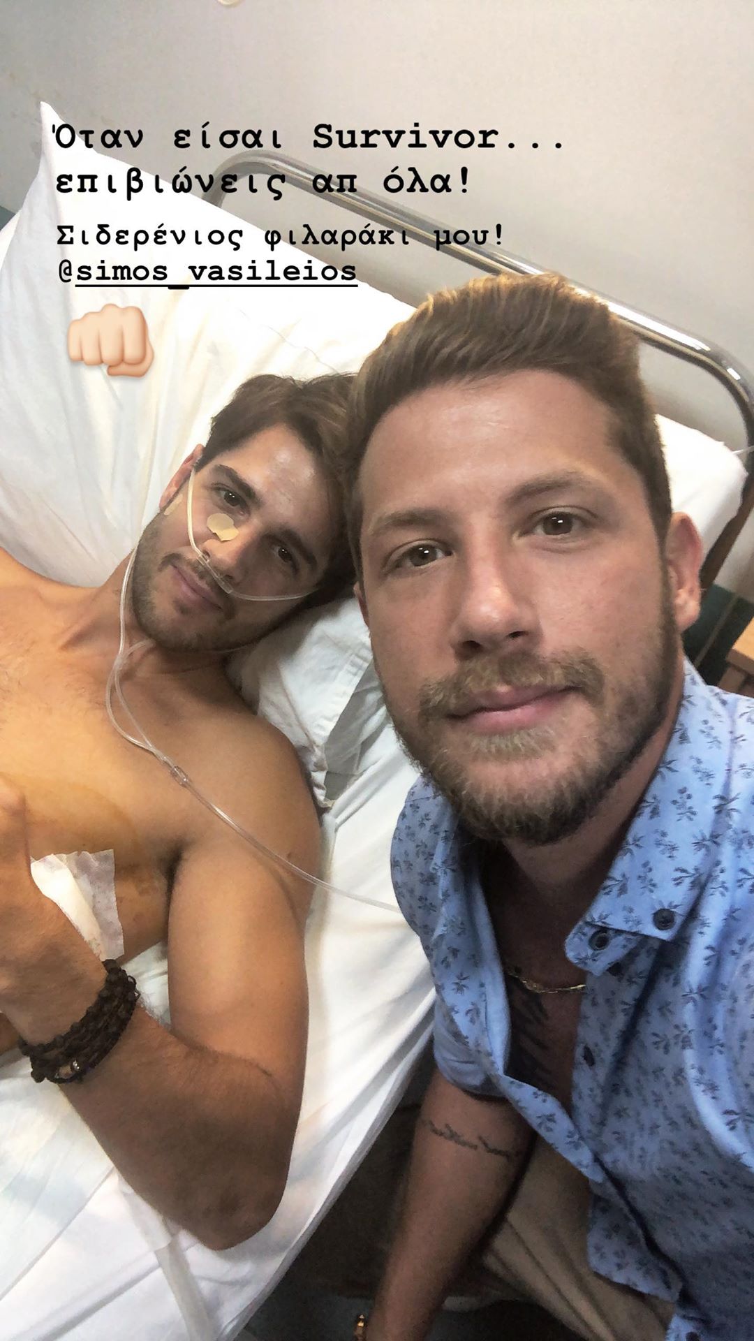 Ο Γιάννης Σπαλιάρας, μάλιστα, θέλοντας να διακωμωδήσει λίγο την κατάσταση και να κάνει τον κολλητό του να του ανεβάσει τη διάθεση, σε βίντεο που μοιράστηκε με τους followers τους είπε χαρακτηριστικά: «Ήρθε για λιποαναρρόφηση, για πλέγμα κοιλιακών. Οι φίλοι του είναι δίπλα του στην προσπάθειά του να γραμμώσει…». Και τα κατάφερε μια χαρά, αφού ο Βασίλης, αν και διασοληνωμένος, δεν μπορούσε να σταματήσει να γελάει.