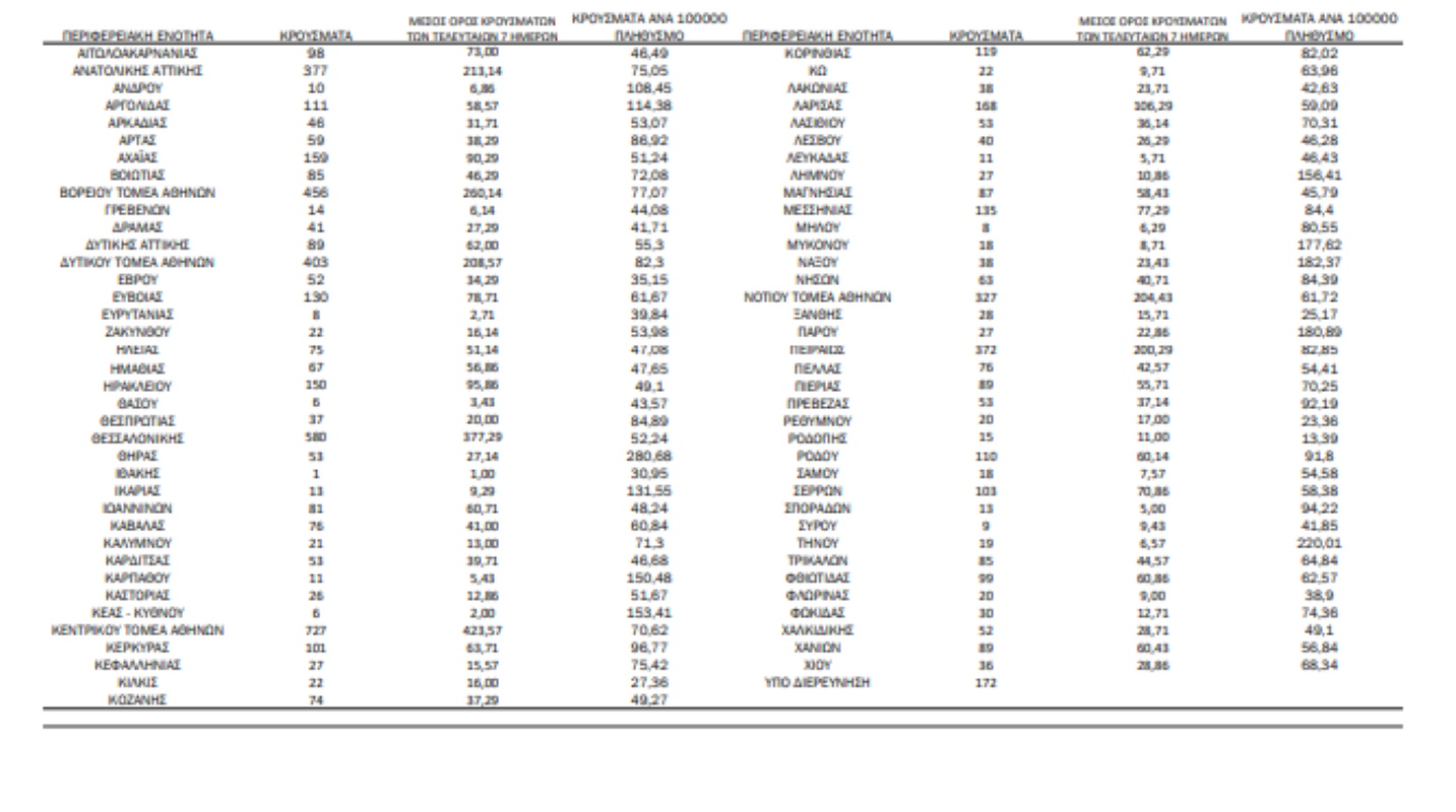 Σύμφωνα με τα στοιχεία του ΕΟΔΥ στην Αττική εντοπίζονται 2.814 νέα κρούσματα και στη Θεσσαλονίκη 580.