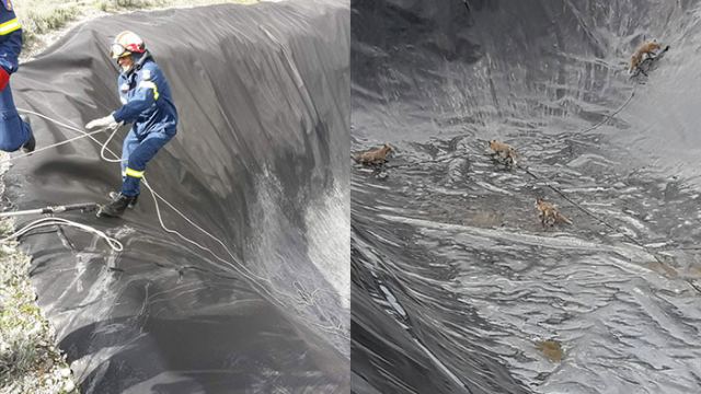 Αλεπούδες παγιδεύτηκαν σε υδατοδεξαμενή - Επιχείρηση της Πυροσβεστικής (ΦΩΤΟ)