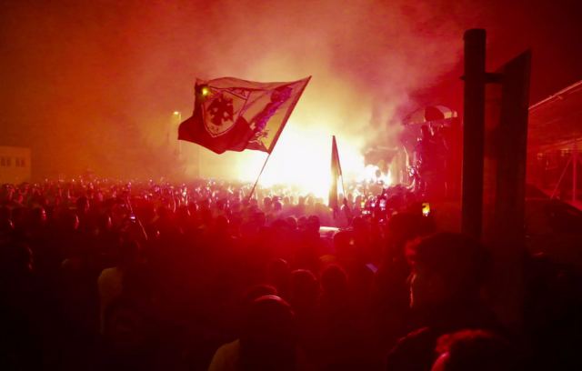 Οι φίλοι της Ένωσης έκαναν… τη νύχτα μέρα και πανηγύρισαν με την ομάδα και τους ποδοσφαιριστές του Αλμέιδα, τη νίκη που έκανε την ΑΕΚ ξεκάθαρο φαβορί για τον τίτλο της Super League 1.