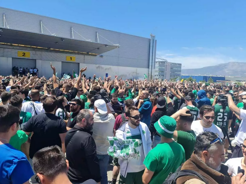Από πολύ νωρίς, οι φίλοι του Παναθηναϊκού έχουν πάει στο αεροδρόμιο και περιμένουν με ανυπομονησία τους πράσινους θριαμβευτές.