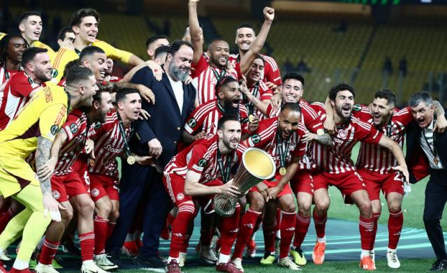 Το σήμα του Ολυμπιακού απέκτησε νέα μορφή, καθώς πάνω από τον δαφνοστεφανομένο έφηβο προστέθηκε ένα ακόμα αστέρι μετά την κατάκτηση του Conference League.