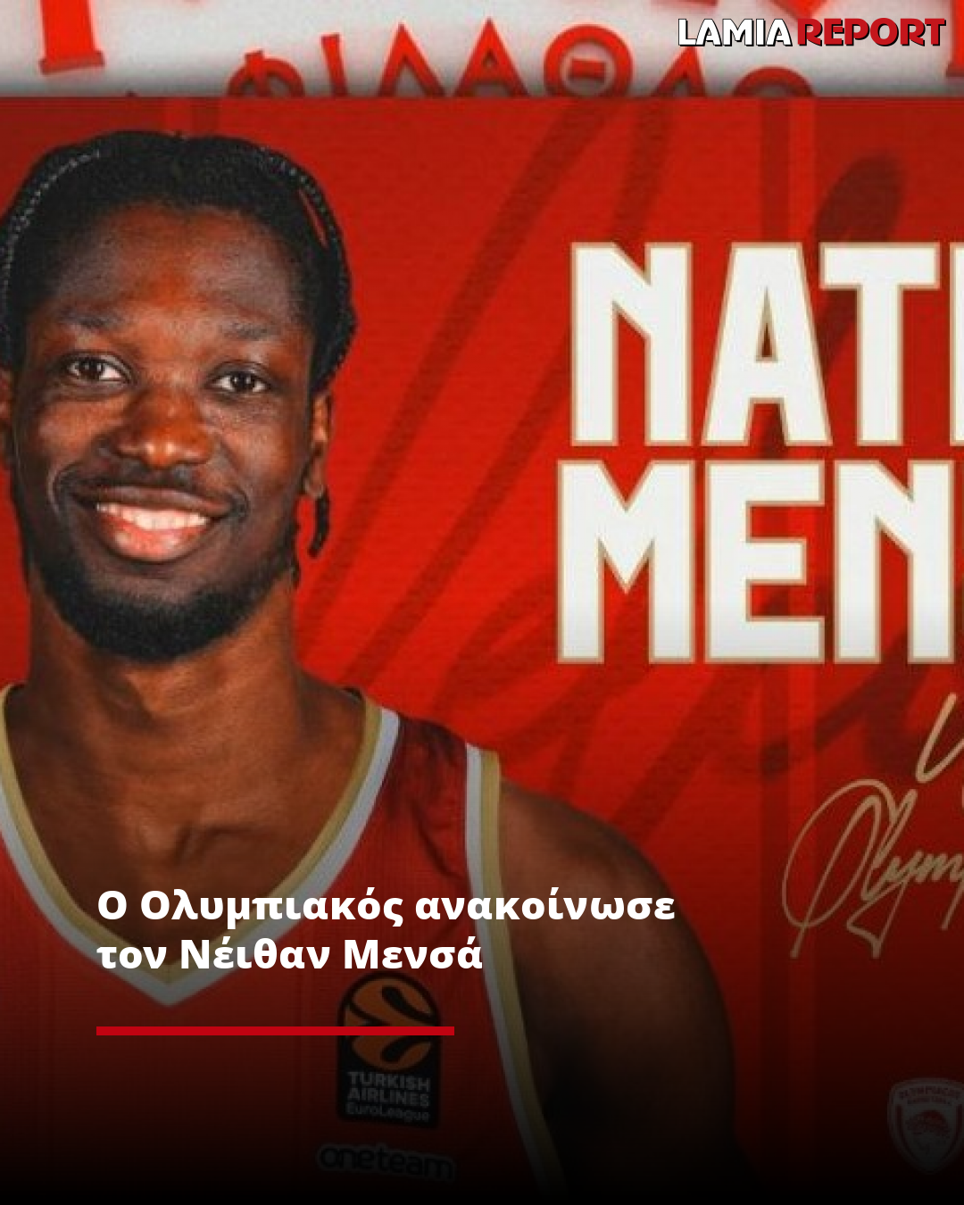 «Η ΚΑΕ Ολυμπιακός ανακοινώνει την απόκτηση του Νέιθαν Μενσά. Ο 26χρονος σέντερ από την Γκάνα υπέγραψε με την ομάδα μας συμβόλαιο μέχρι το τέλος της σεζόν, με οψιόν ανανέωσης για έναν ακόμη χρόνο.