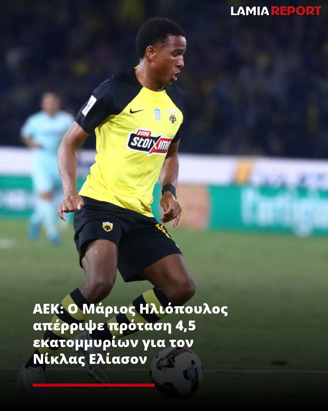 Η ΑΕΚ είπε “όχι” σε επίσημη προσφορά για τον Νίκλας Ελίασον. Σύμφωνα με την ενημέρωση της ίδιας της ΠΑΕ, ο Μάριος Ηλιόπουλος απέρριψε πρόταση 4,5 εκατ. ευρώ για την πώληση του 29χρονου παίκτη, μια κίνηση που δείχνει πως οι “κιτρινόμαυροι” υπολογίζουν και παράλληλα δεν έχουν σκοπό να πουλήσουν τον Σουηδό εξτρέμ, με χαμηλό αντίτιμο.