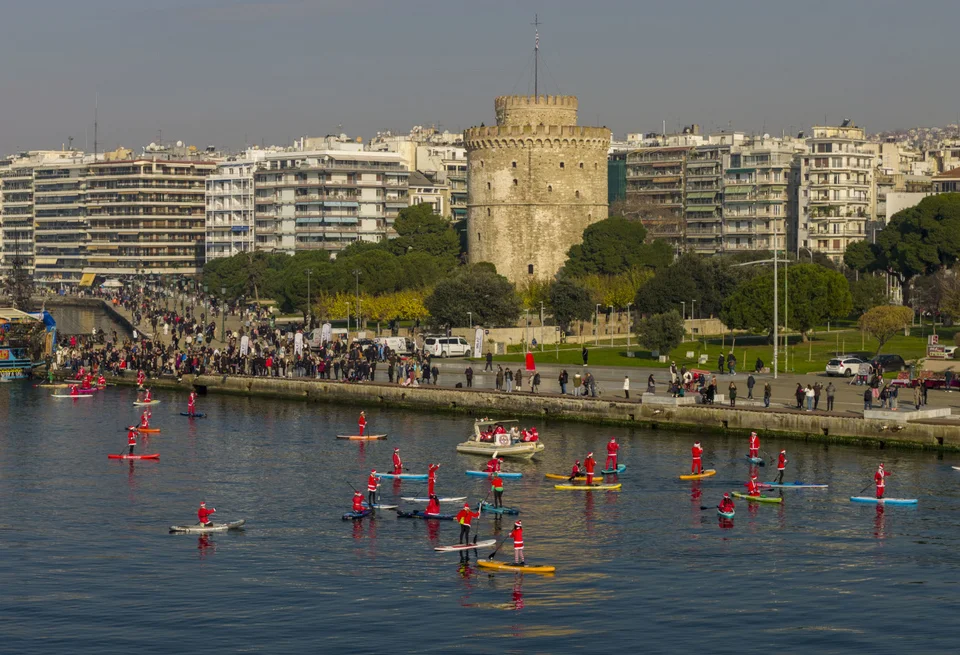 Αυστραλία θύμισε η Θεσσαλονίκη το πρωί της Κυριακής, καθώς δεκάδες αγιοβασίληδες πήγαν στη θάλασσα μαζί με τις σανίδες τύπου SUP για ένα ξεχωριστό χριστουγεννιάτικο event.