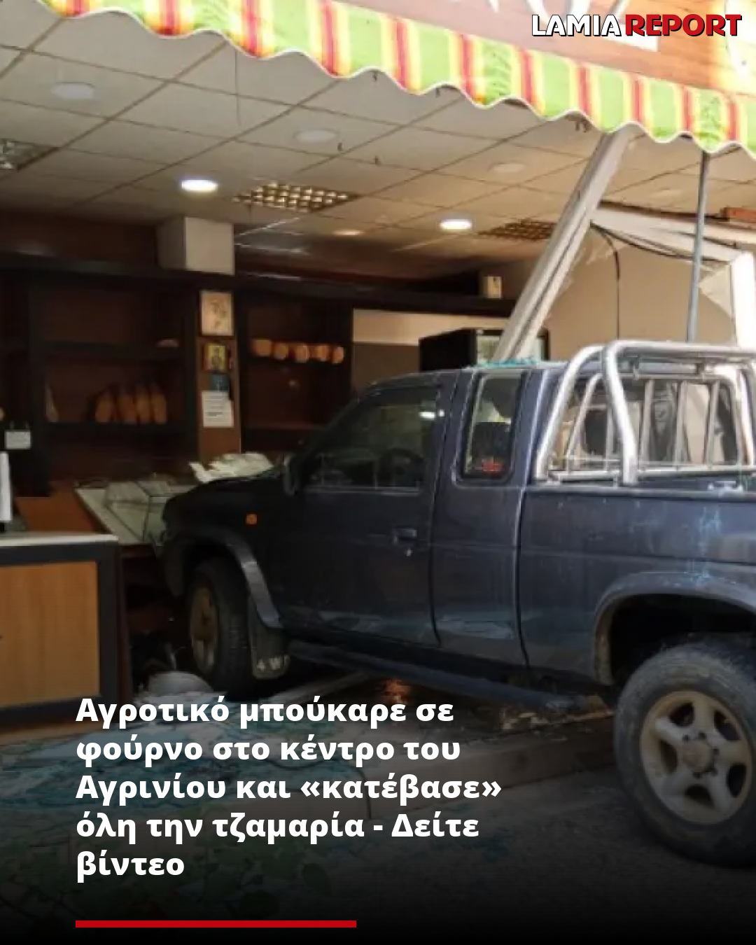 Αγροτικό μπούκαρε σε φούρνο στο κέντρο του Αγρινίου και «κατέβασε» όλη την τζαμαρία - Δείτε βίντεο