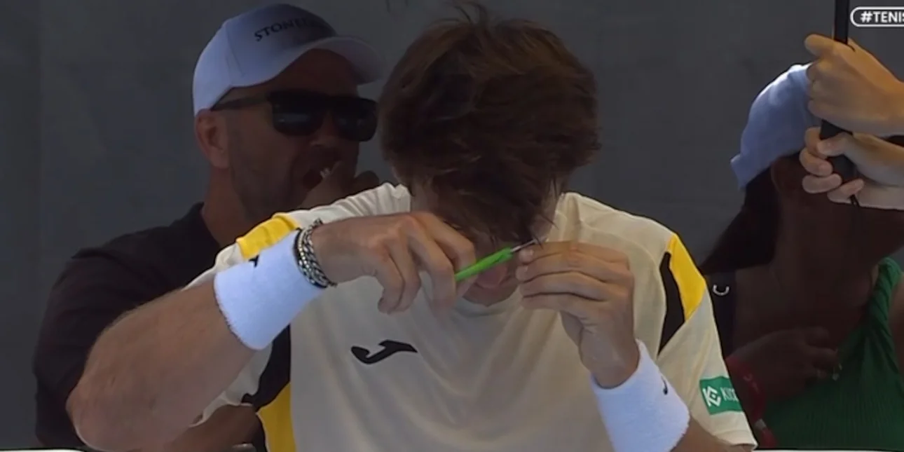 Ο 26χρονος αντιμετώπιζε τον Alejandro Tabilo στο ASB Classic στο Όκλαντ την Τρίτη, όταν έβγαλε ένα ψαλίδι και άρχισε να κόβει μόνος του τη φράντζα του.