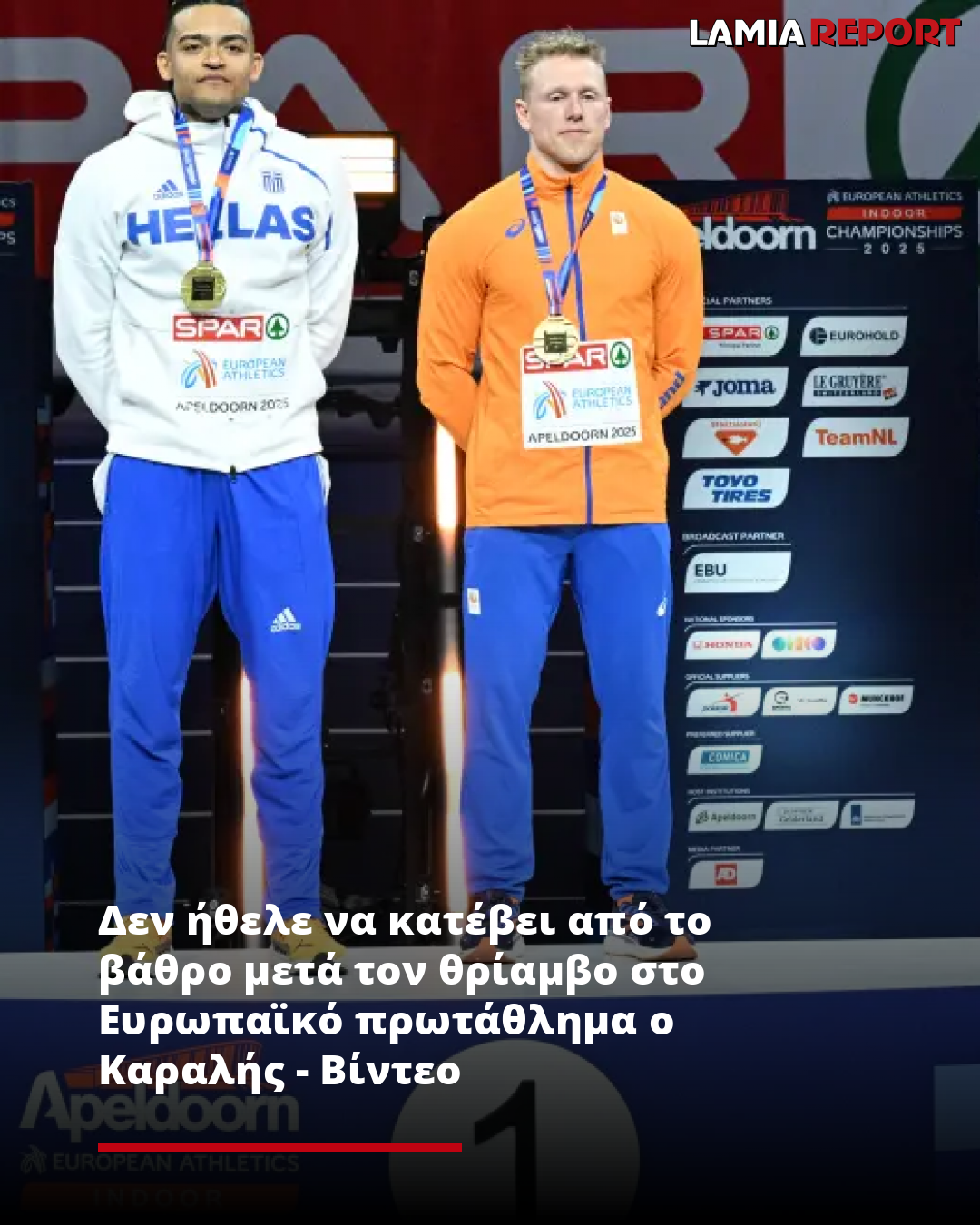 Ο Εμμανουήλ Καραλής μοιράστηκε το χρυσό με τον Ολλανδό Μένο Φλον και όταν έφτασε η ώρα της απονομής δεν ... ξεκολλούσε από το βάθρο.