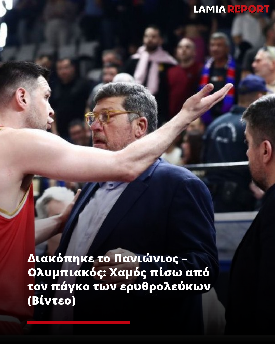 Τρία λεπτά πριν το φινάλε του πρώτου ημιχρόνου της προημιτελικής σειράς της Greek Basketball League ανάμεσα στον Πανιώνιο και τον Ολυμπιακό, ο αγώνας διακόπηκε.