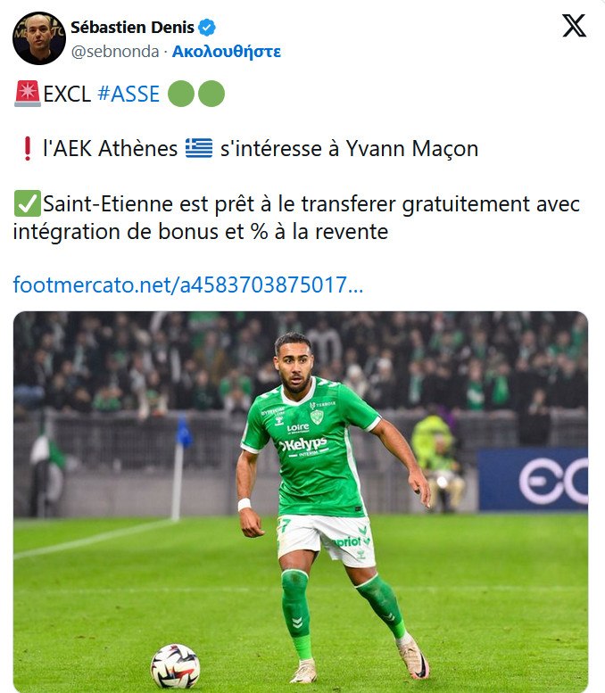 Δημοσίευμα από τη Γαλλία κάνει λόγο για ενδιαφέρον της ΑΕΚ για τον δεξιό μπακ της Σεντ Ετιέν, Ιβάν Μασόν, κάτι ωστόσο που δεν φαίνεται να προκύπτει σύμφωνα με το ρεπορτάζ
