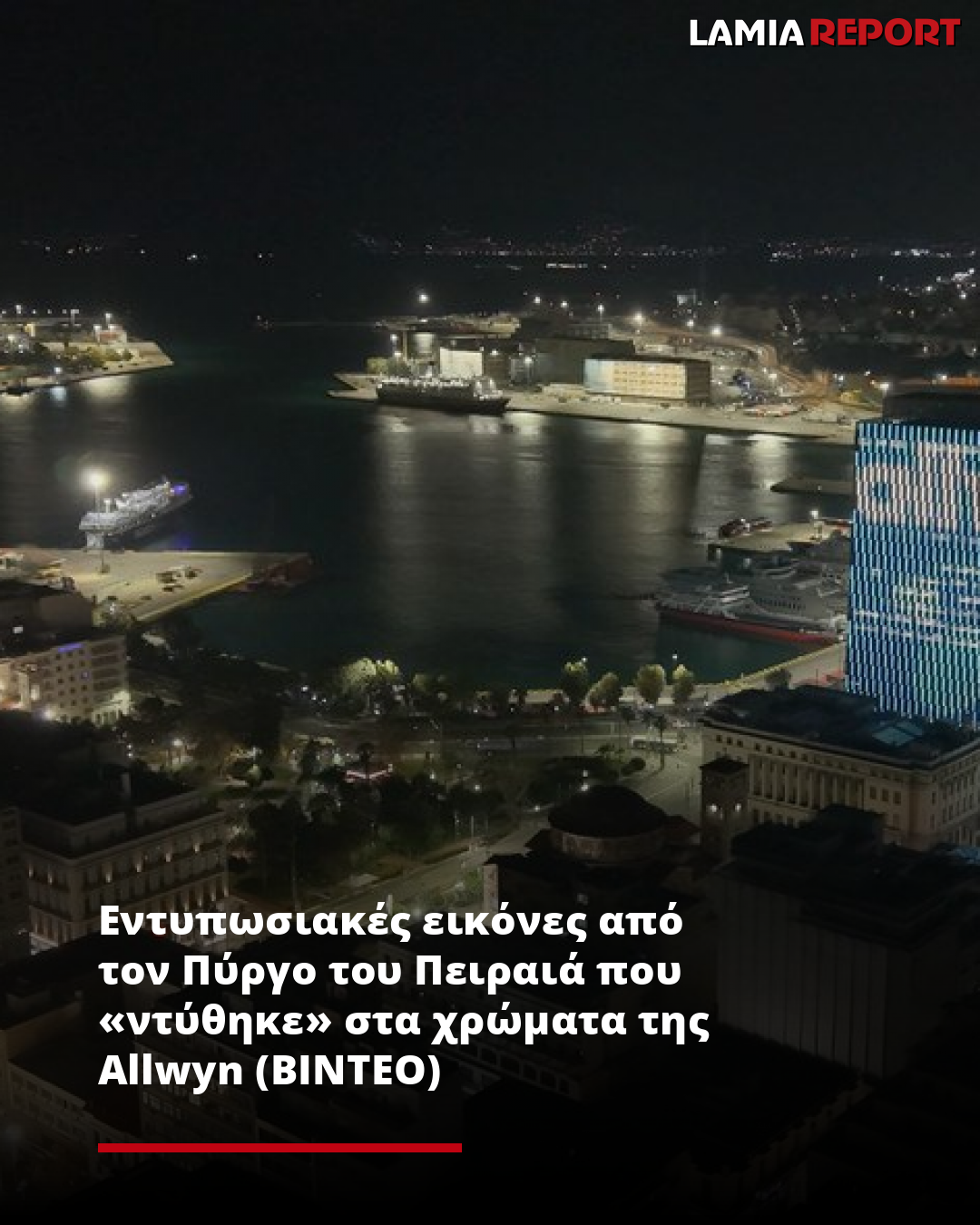 Εντυπωσιακές εικόνες από τον Πύργο του Πειραιά που «ντύθηκε» στα χρώματα της Allwyn (ΒΙΝΤΕΟ)