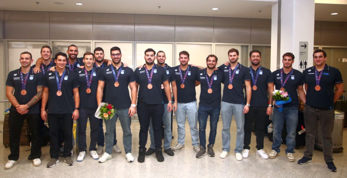 Όπως επισημαίνει το protothema.gr, με τα χάλκινα μετάλλια να κοσμούν τα στήθη των διεθνών μας, η αποστολή της Εθνικής Ομάδας Πόλο Ανδρών επέστρεψε το απόγευμα της Δευτέρας (26/1) στην Ελλάδα, γνωρίζοντας την αποθέωση για ακόμη μία σπουδαία επιτυχία σε διεθνές επίπεδο.