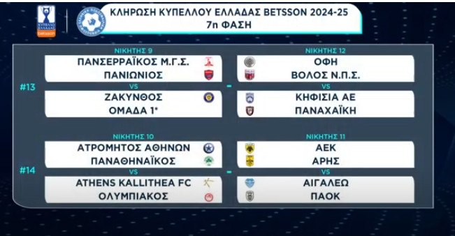 ΑΕΚ-Άρης και Ατρόμητος-Παναθηναϊκός τα δύο ζευγάρια που ξεχωρίζουν στην επόμενη φάση, πιο εύκολο έργο για ΠΑΟΚ και Ολυμπιακό που αντιμετωπίζουν Αιγάλεω και Καλλιθέα αντίστοιχα.