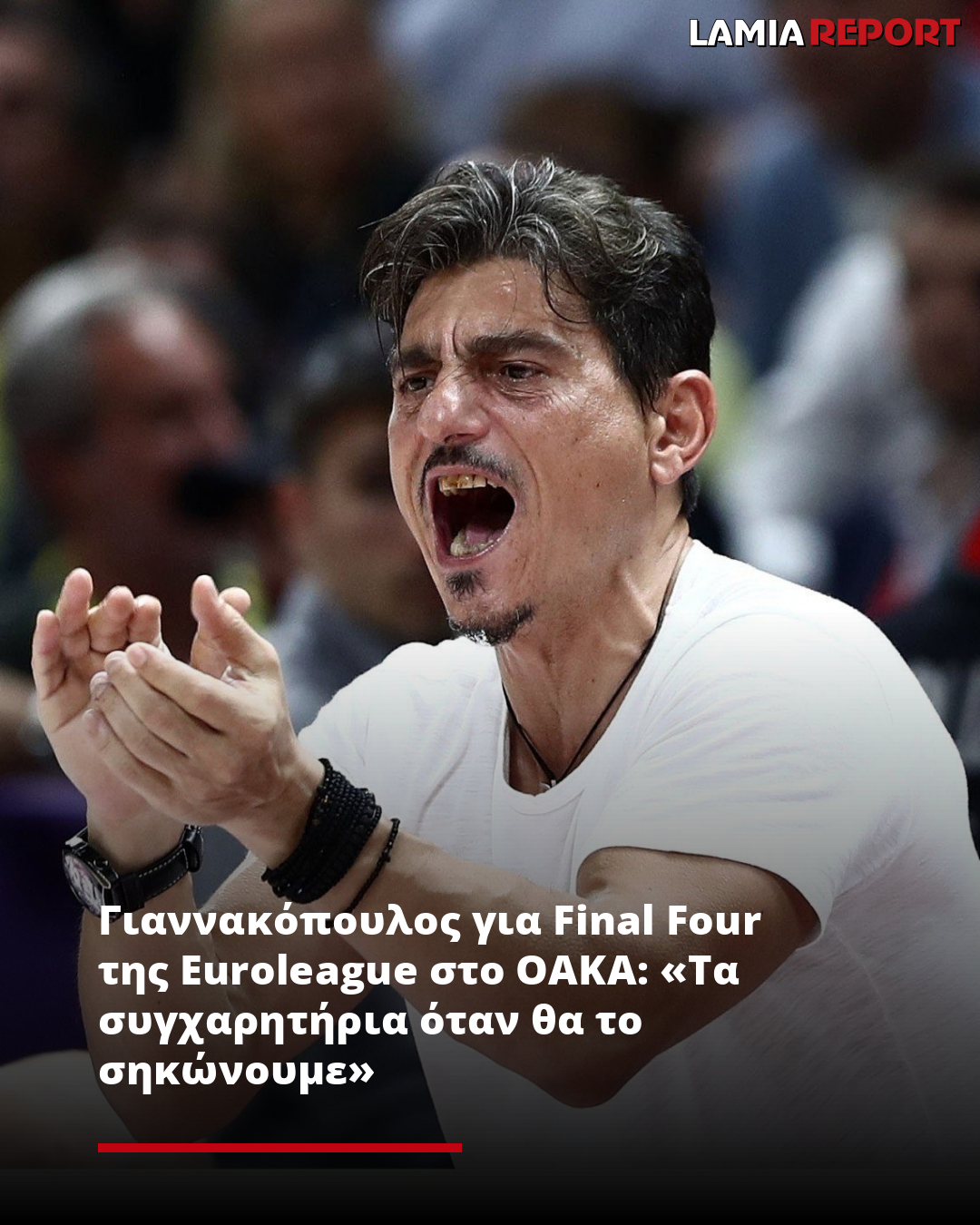 «Ευχαριστώ όλους για τα ατελείωτα μηνύματα και τα συγχαρητήρια για το Final Four που θα γίνει εδώ, αλλά δεν τα αξίζω. Τα συγχαρητήρια αξίζουν στην πολιτική ηγεσία, σε όσους ασχολήθηκαν για να έρθει εδώ το Final Four. Είχε να γίνει πάρα πολλά χρόνια στην Ελλάδα, θεωρώ είναι δίκαιο. Τα συγχαρητήρια όταν θα το σηκώνουμε», ήταν το μήνυμα του Δημήτρη Γιαννακόπουλου.