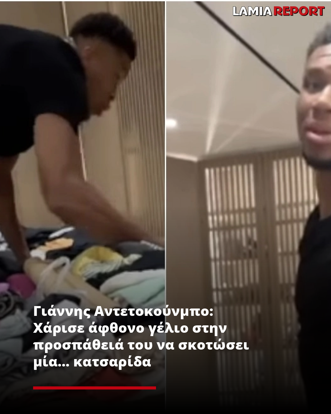 Άφθονο γέλιο χάρισε ο Γιάννης Αντετοκούνμπο στους θαυμαστές του, στην προσπάθειά του να «πετύχει» μία... κατσαρίδα, πετώντας της παπούτσια.