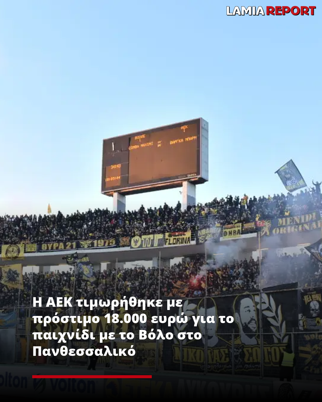Η ΑΕΚ τιμωρήθηκε με πρόστιμο 18.000 ευρώ για το παιχνίδι με το Βόλο στο Πανθεσσαλικό