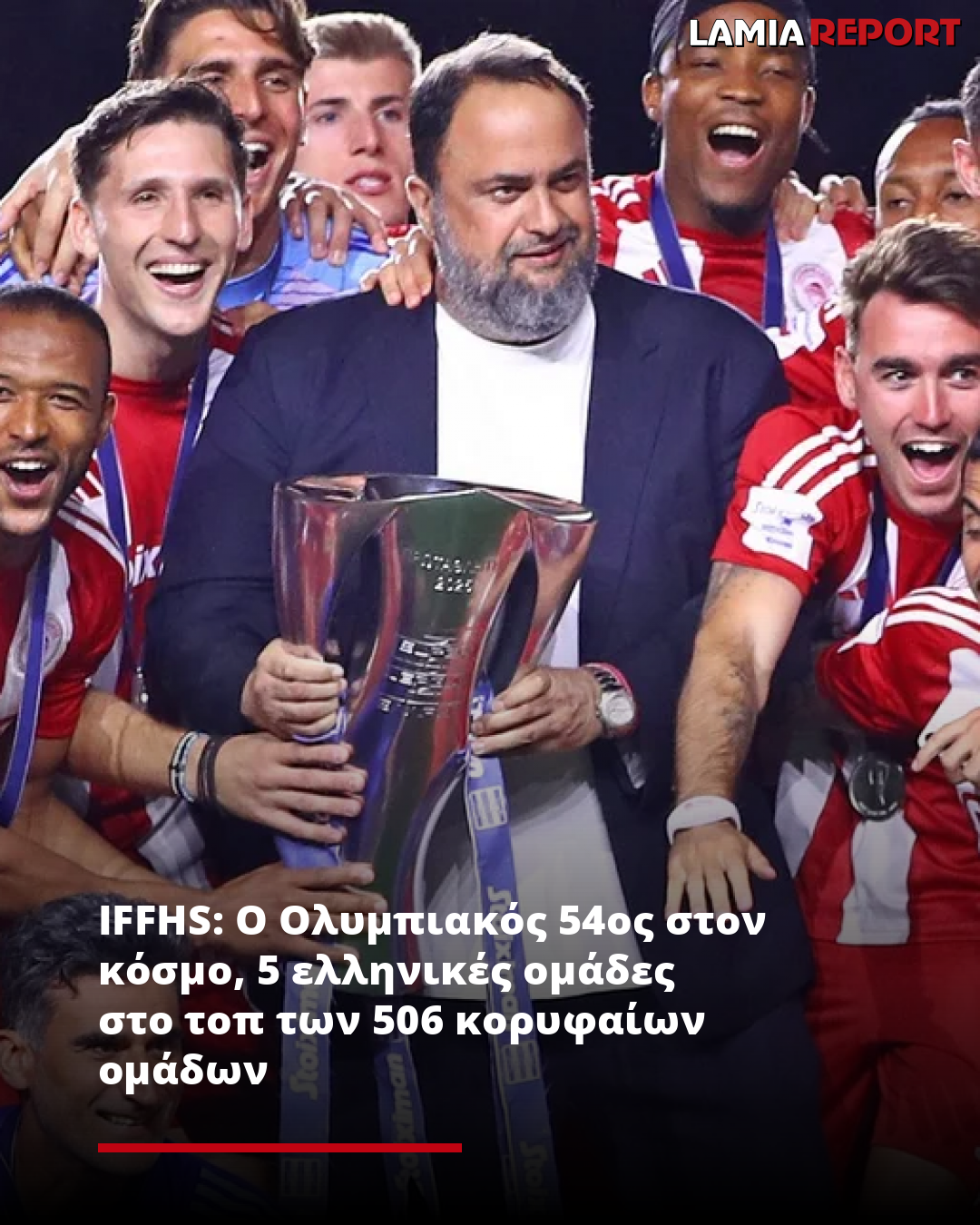 O Ολυμπιακός ανέβηκε μία θέση, για να βρεθεί 54ος (από 55ος) με 206 βαθμούς, στη νέα παγκόσμια κατάταξη με τις 506 κορυφαίες ομάδες (1.9.24-31.8.25), που ανακοίνωσε η Διεθνής Oμοσπονδία Ιστορίας και Στατιστικής του Ποδοσφαίρου (IFFHS).
