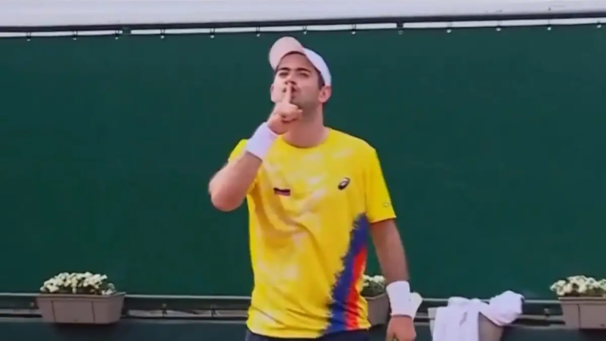 El tenista caleño, raqueta número uno de Colombia, celebró mandando a callar a los aficionados marroquíes, que… pic.twitter.com/l2922YczP5