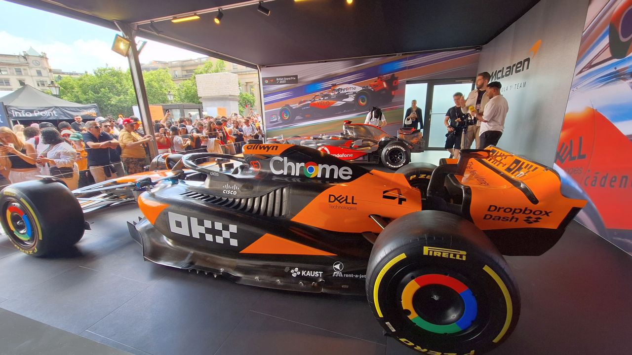 Λίγο πριν το 12ο Grand Prix της χρονιάς στην ιστορική πίστα του Silverstone, η Trafalgar Square στο Λονδίνο «ντύθηκε» στα χρώματα της McLaren με χιλιάδες υποστηρικτές της ομάδας να σχηματίζουν ουρές χιλιομέτρων για να δουν από κοντά τους αγαπημένους τους πιλότους, Lando Norris και Oscar Piastri.