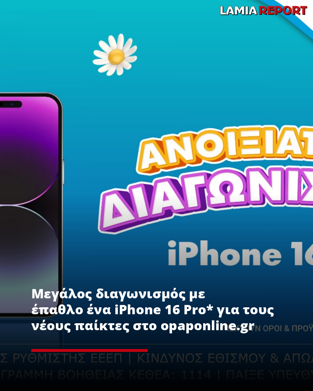Μεγάλος διαγωνισμός με έπαθλο ένα iPhone 16 Pro* για τους νέους παίκτες στο opaponline.gr