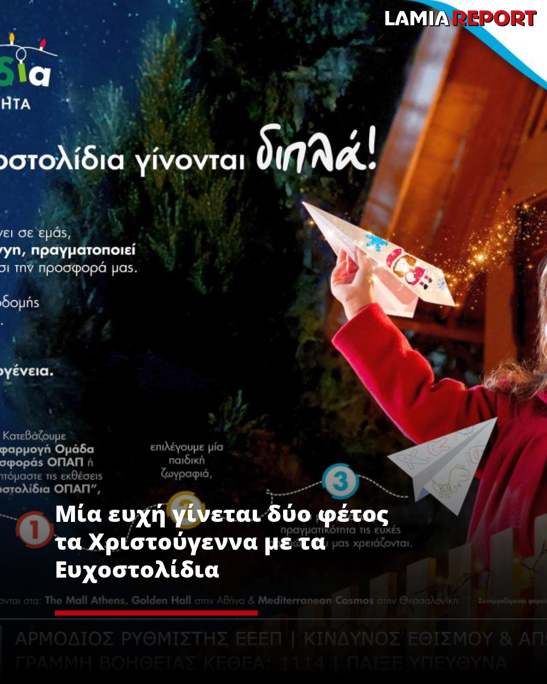 Μέσα από τα Ευχοστολίδια του ΟΠΑΠ, οι ευχές γίνονται ζωγραφιές, οι ζωγραφιές μεταμορφώνονται σε χάρτινες σαΐτες και ταξιδεύουν σε όλους μας, για να κάνουμε τα όνειρα των παιδιών πραγματικότητα.