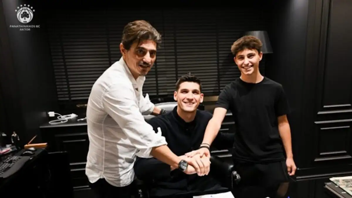 Ο Ντίνος Μήτογλου υπέγραψε το νέο του συμβόλαιο με τον Παναθηναϊκό παρουσία του Δημήτρη και του Παύλου Γιαννακόπουλου.