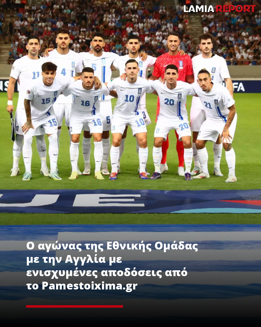 Προσφέρει και τις ακόλουθες ενισχυμένες αποδόσεις* για τα 2 τελευταία παιχνίδια της Εθνικής Ομάδας στο Nations League, σήμερα με την Αγγλία και την Κυριακή, στο Ελσίνκι, με την Φινλανδία: