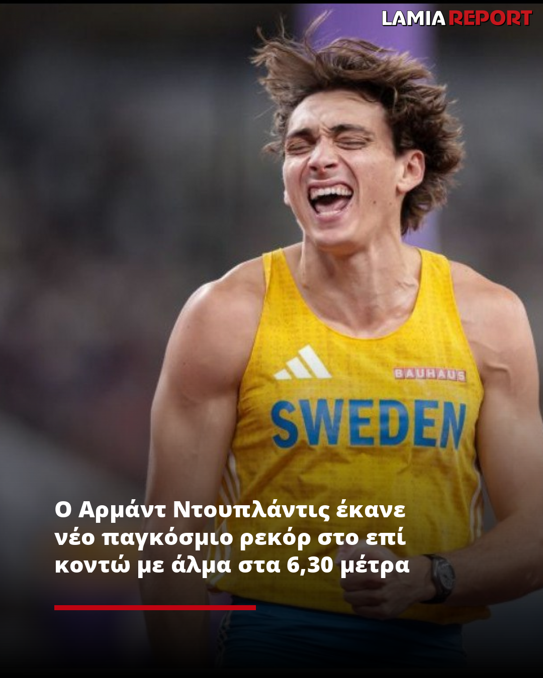 Ο Αρμάντ Ντουπλάντις έκανε νέο παγκόσμιο ρεκόρ στο επί κοντώ με άλμα στα 6,30 μέτρα
