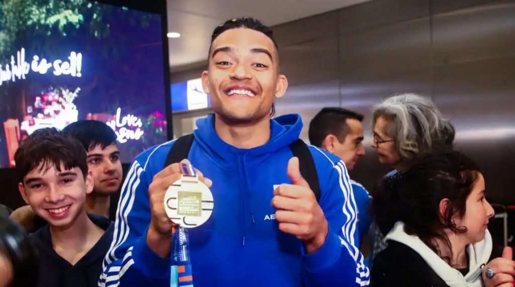 Με το χρυσό μετάλλιο στα χέρια ο Καραλής στην επιστροφή του από την Ολλανδία