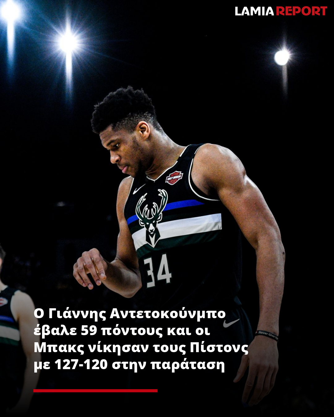 Ο Γιάννης Αντετοκούνμπο μπήκε σε «beast mode», έκανε ρεκόρ πόντων τη φετινή σεζόν (59 πόντους) και οι Μιλγουόκι Μπακς κατάφεραν να επικρατήσουν εντός έδρας των Ντιτρόιτ Πίστονς με 127-120, στην παράταση (111-111). Μοιραίος για τους φιλοξενούμενους ο ρούκι Ρον Χόλαντ που αστόχησε σε βολές στο τέλος της κανονικής διάρκειας.