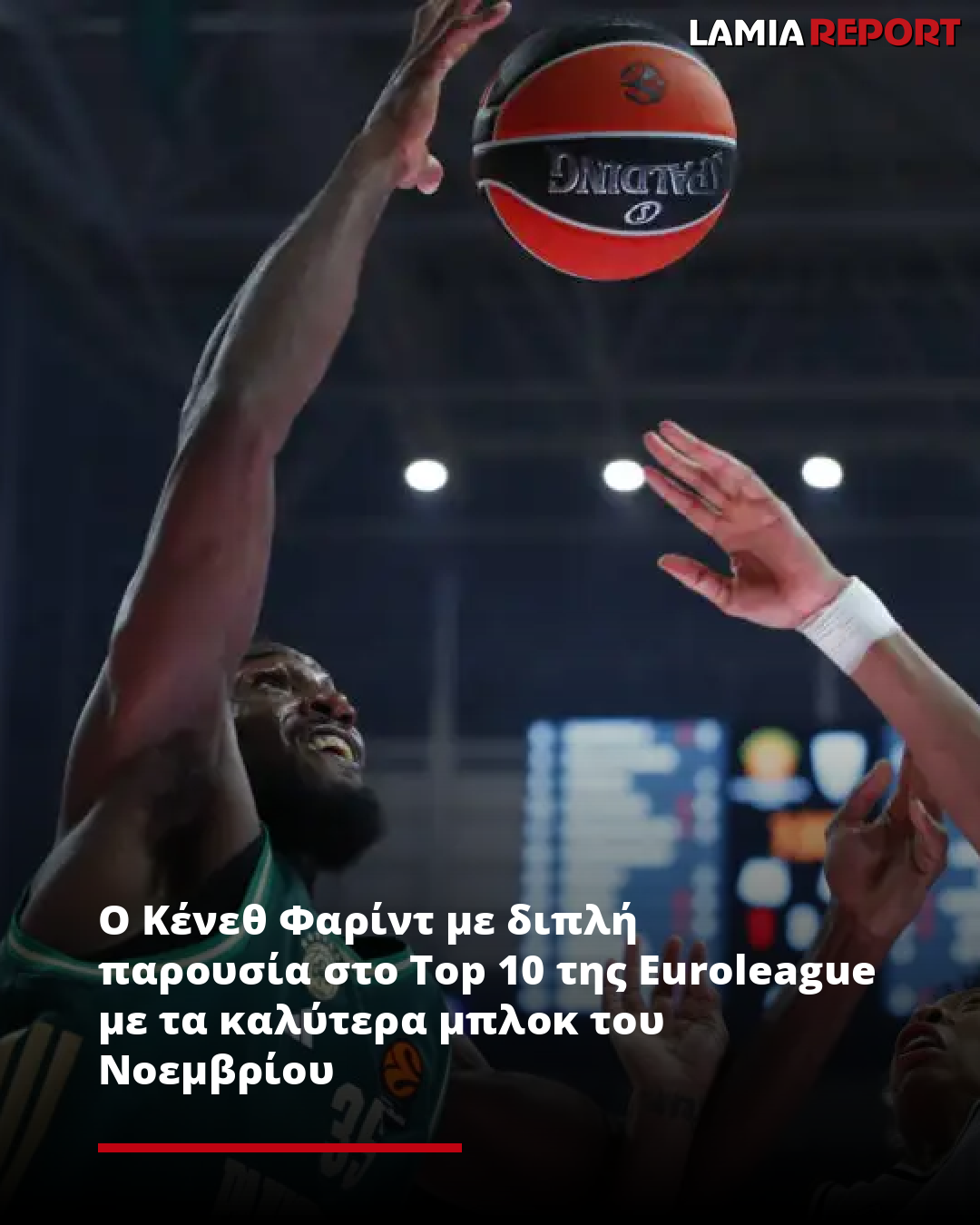 Τα μπλοκ του Κένεθ Φαρίντ στα παιχνίδια (4) που έχει αγωνιστεί στη Euroleague είναι πολλά (8) και εντυπωσιακά, με κορυφαίο αυτό πάνω στον Καμπενγκέλε της Dubai BC, που πήγε για alley oop κάρφωμα χωρίς να υπολογίσει την ικανότητα του Αμερικανού. Αυτή η τάπα του χάρισε τη δεύτερη θέση στο Top 10 της σχετικής κατηγορίας για τον μήνα Νοέμβριο.