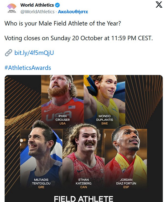 Αυτή την εβδομάδα ξεκινάει η διαδικασία ψηφοφορία για τους κορυφαίους στο στίβο το 2024 και θα ολοκληρωθεί στις 20 Οκτωβρίου.