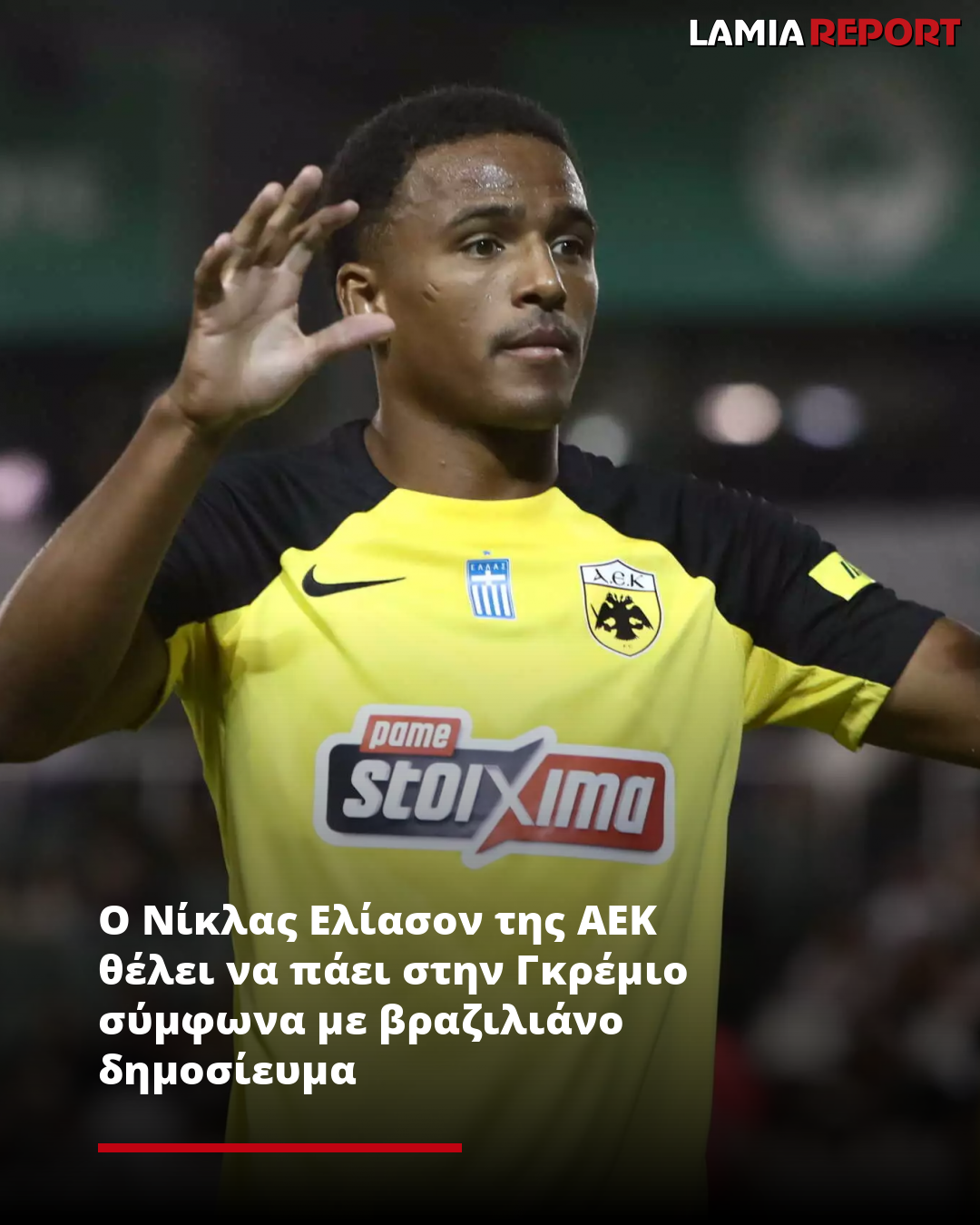 Ο Νίκλας Ελίασον παρουσιάζεται «ζεστός» στο ενδεχόμενο να φύγει από την ΑΕΚ και να πάει στην Βραζιλία προκειμένου να φορέσει τη φανέλα της Γκρέμιο, όπως αναφέρει δημοσίευμα από την χώρα.