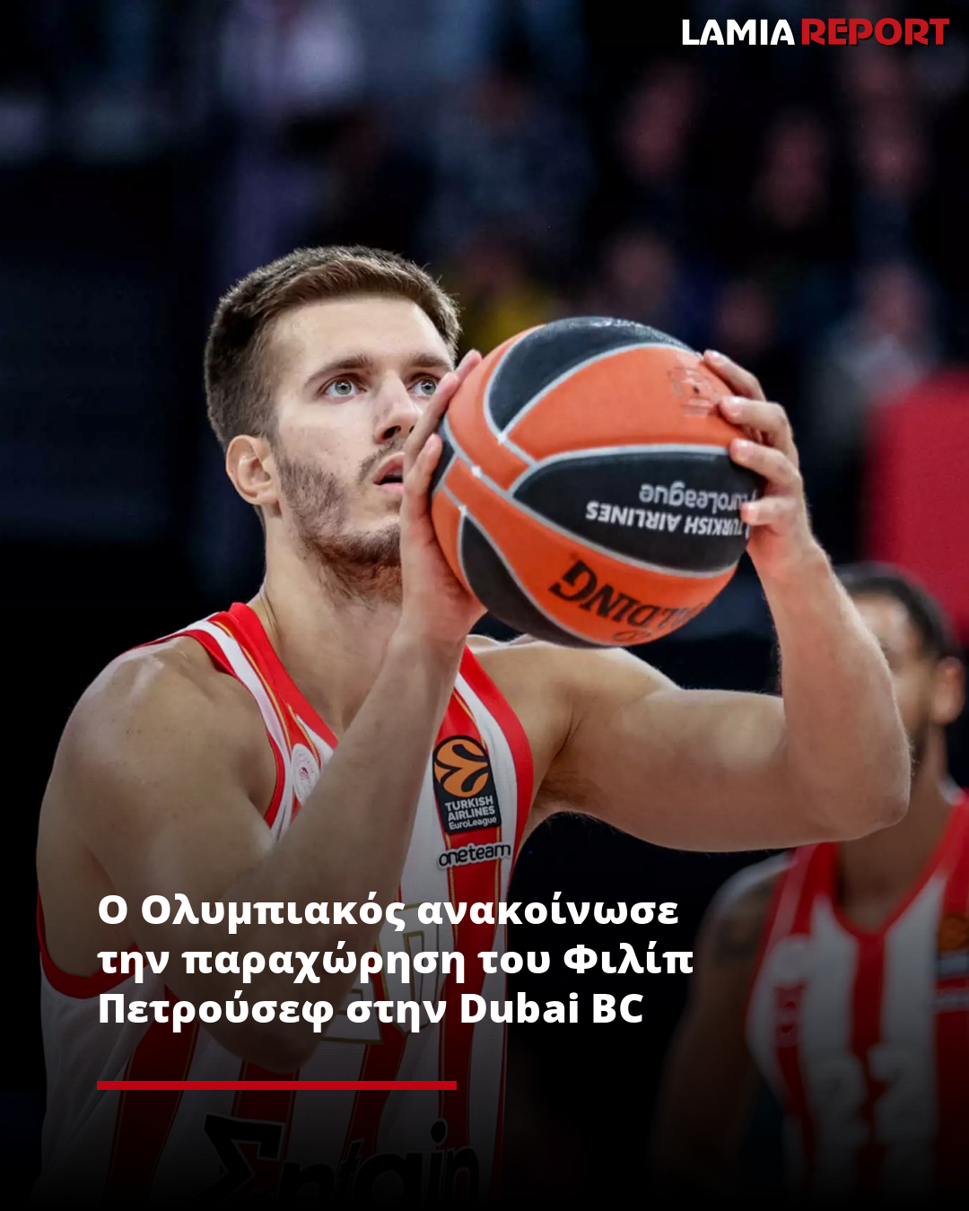 Παρελθόν από τον Ολυμπιακό αποτελεί ο Φιλίπ Πετρούσεφ, καθώς ο σύλλογος ανακοίνωσε την παραχώρησή του στην Dubai BC. Η ομάδα από τα Ηνωμένα Αραβικά Εμιράτα ενεργοποίησε τη ρήτρα αποδέσμευσης του Σέρβου σέντερ, καταβάλλοντας στους Πειραιώτες το ποσό του ενός εκατομμυρίου ευρώ.