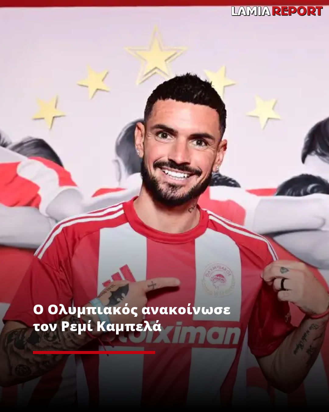 “Η ΠΑΕ Ολυμπιακός ανακοινώνει την απόκτηση του Ρεμί Καμπελά. Γεννημένος στις 8 Μαρτίου 1990, ο Γάλλος μέσος προέρχεται από τη LOSC Lille, με τη φανέλα της οποίας από το 2022 αγωνίστηκε 113 φορές, με απολογισμό 13 γκολ και 22 ασίστ.