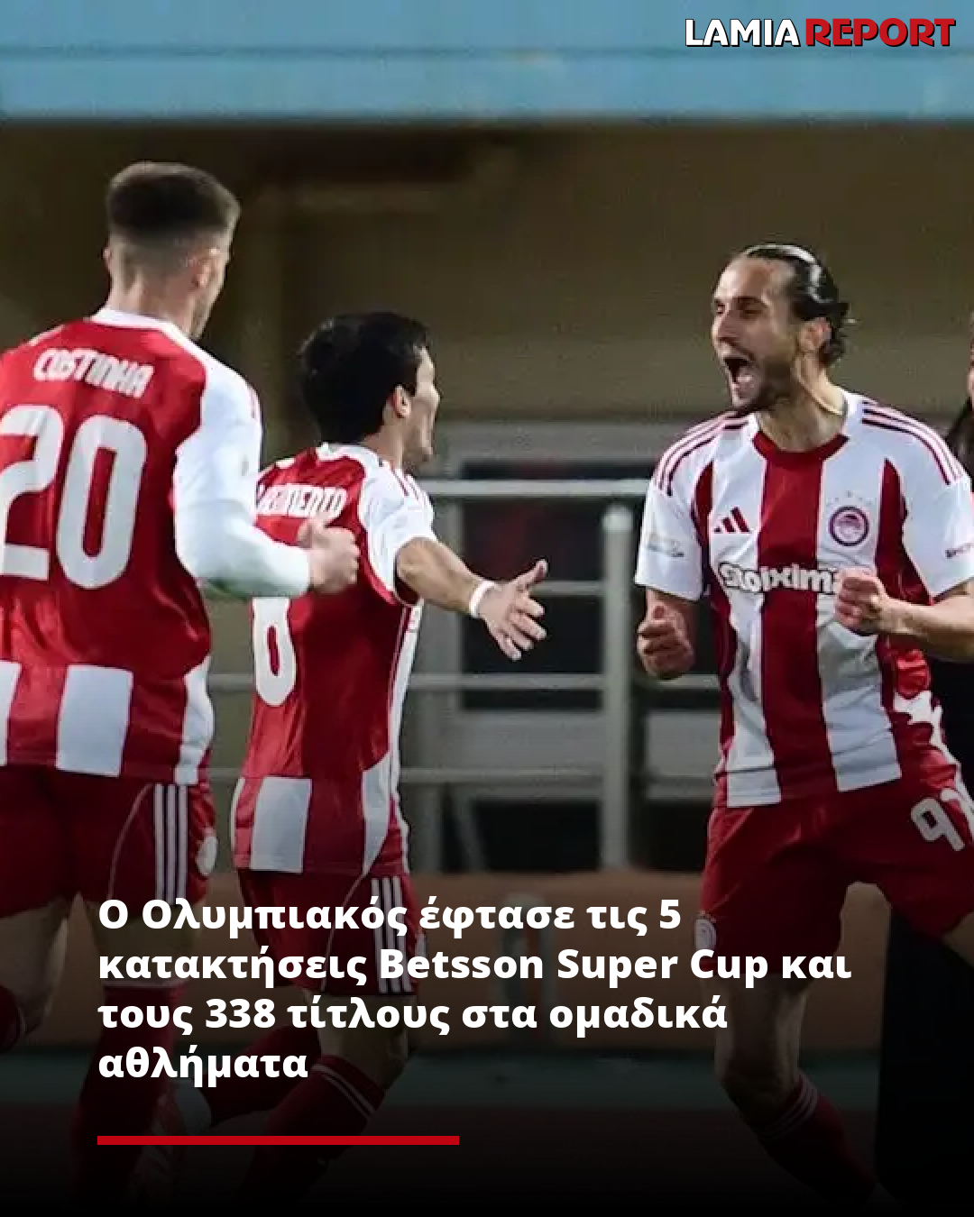 Το τμήμα ποδοσφαίρου ανδρών των Πειραιωτών έφτασε έτσι τους 84 τίτλους στην ιστορία του, ενώ ο Ολυμπιακός “έπιασε” τους 338 τίτλους σε ομαδικά αθλήματα.