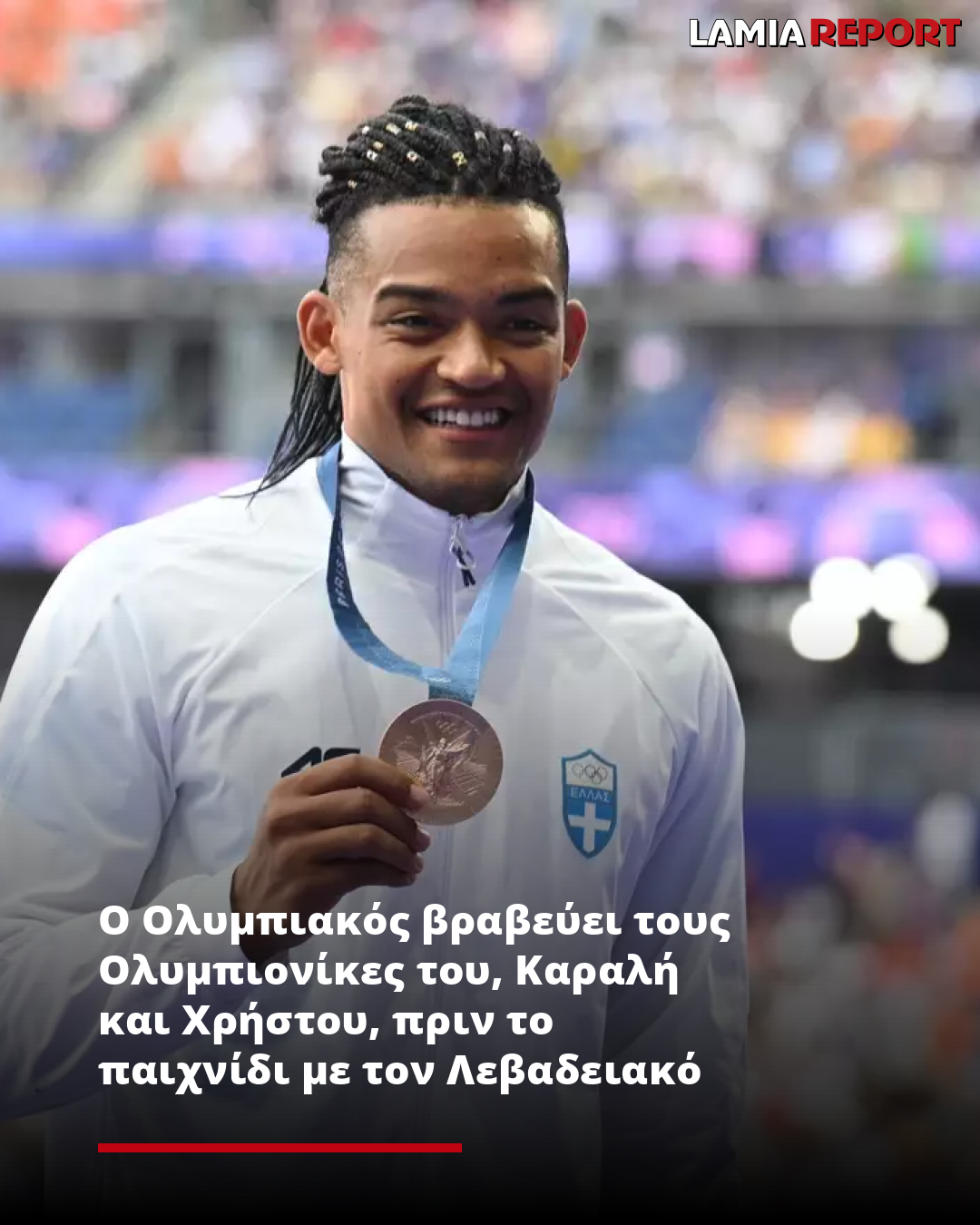 Η ΠΑΕ Ολυμπιακός θα βραβεύσει τους δύο ολυμπιονίκες της στους Αγώνες στο Παρίσι, τους Εμμανουήλ Καραλή και Απόστολο Χρήστου πριν τη σέντρα του αγώνα με τον Λεβαδειακό στο “Γ. Καραϊσκάκης” την Κυριακή (16:00, 20/10).