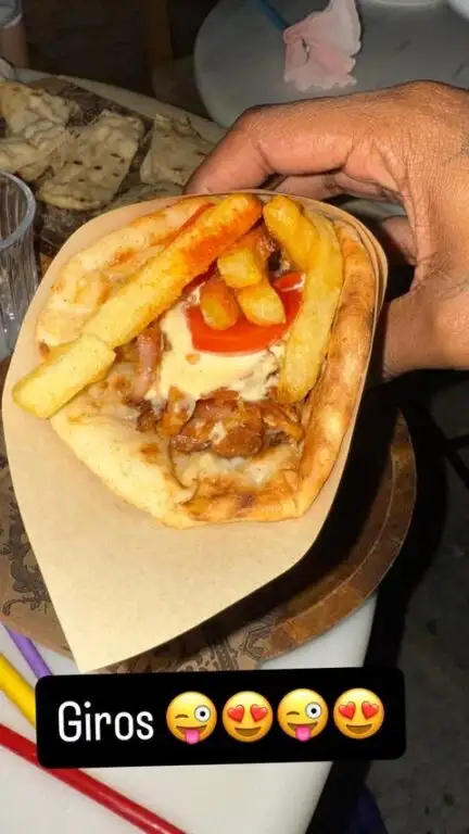 Ο “Ρόντι” ανέβασε, μάλιστα, δύο διαφορετικά στόρι, στα οποία, όπως αναφέρει το newsit.gr, συστήνει στους φίλους του εκτός Ελλάδας τον «γύρο» και το «σουβλάκι».