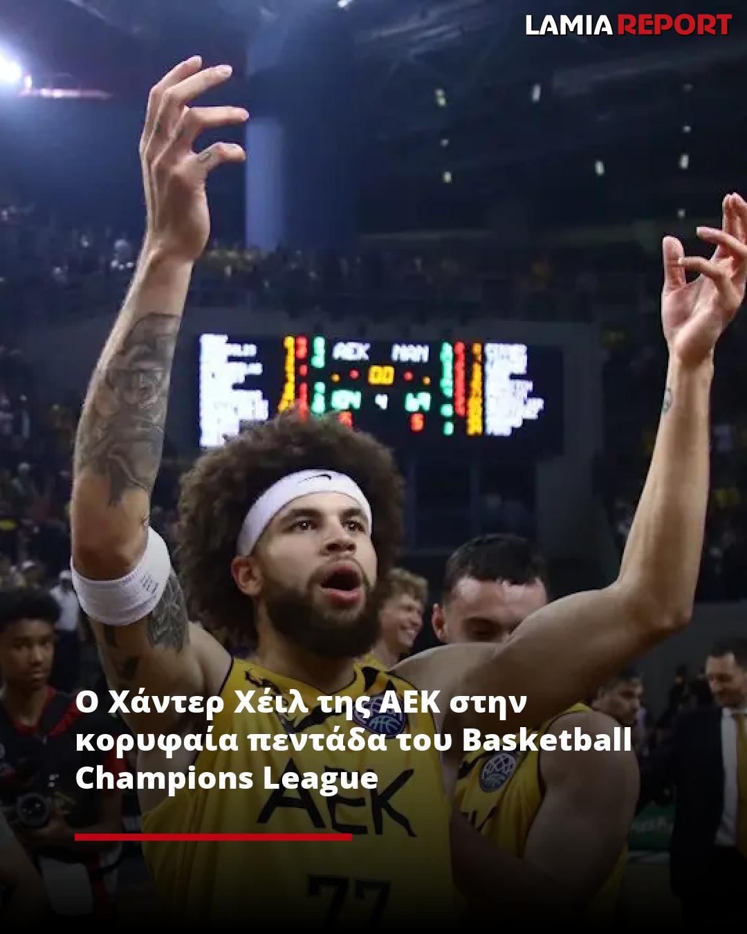 Σημαντική διάκριση για τον Χάντερ Χέιλ της ΑΕΚ καθώς o Αμερικανός γκαρντ βρέθηκε στην κορυφαία πεντάδα του Basketball Champions League, παίρνοντας και το σχετικό βραβείο -το μεσημέρι του Σαββάτου (10.05.2025)- στην εκδήλωση για τους καλύτερους τη σεζόν στη διοργάνωση..