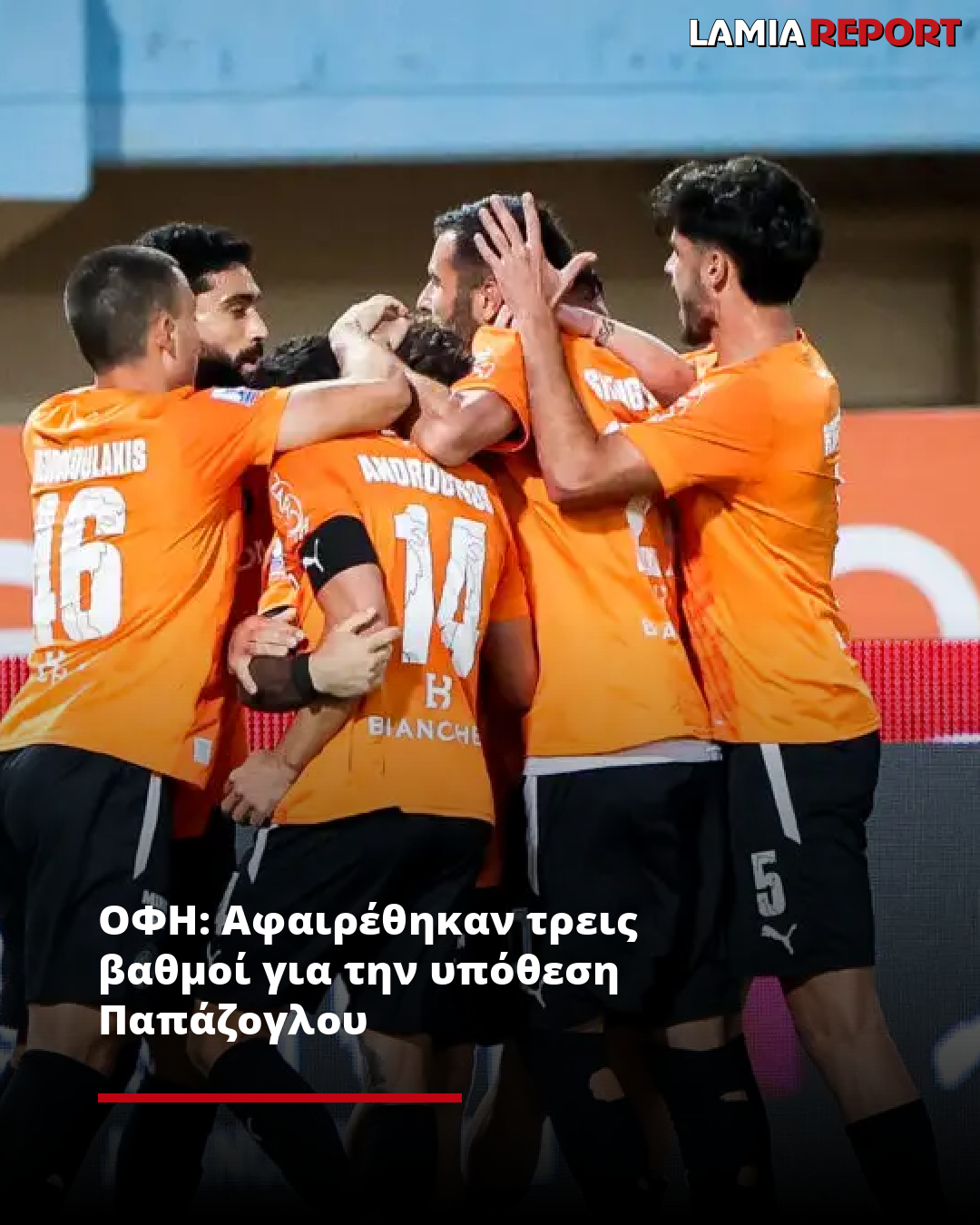 “Ανακοινώνεται ότι σε εκτέλεση της υπ’ αριθμ. 51/2025 απόφασης του Διαιτητικού Δικαστηρίου Ποδοσφαίρου της ΕΠΟ και αφού παρήλθε άπρακτη η προθεσμία των πέντε (5) εργασίμων ημερών που το Δικαστήριο έταξε στην ΠΑΕ Ο.Φ.Η. για την εξόφληση της επιδικασθείσης χρηματικής απαίτησης του αιτούντος Αθανασίου Παπάζογλου, από την ΠΑΕ Ο.Φ.Η. αφαιρούνται τρεις (3) βαθμοί από τον οικείο βαθμολογικό πίνακα.