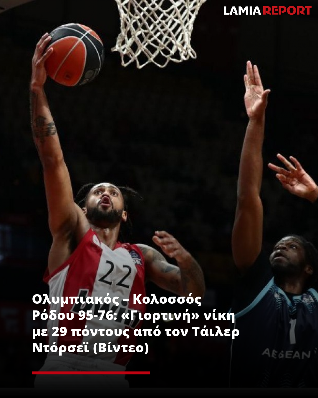 Ολυμπιακός – Κολοσσός Ρόδου 95-76: «Γιορτινή» νίκη με 29 πόντους από τον Τάιλερ Ντόρσεϊ (Βίντεο)