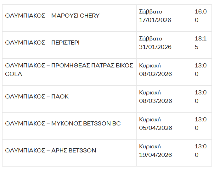 Η Κ.Α.Ε. ΟΛΥΜΠΙΑΚΟΣ ανακοινώνει ότι ξεκίνησε το πρωί της Δευτέρας (12-1-2026) η διάθεση των εισιτηρίων για τους εντός έδρας αγώνες του δεύτερου γύρου της STOIXIMAN GBL.