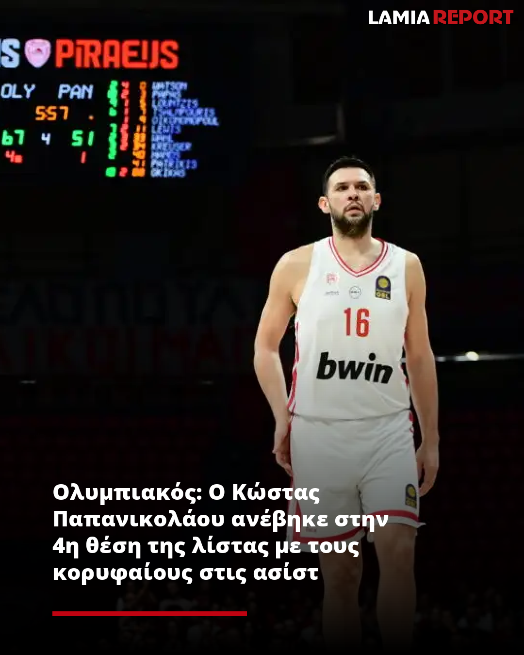 Ολυμπιακός: Ο Κώστας Παπανικολάου ανέβηκε στην 4η θέση της λίστας με τους κορυφαίους στις ασίστ